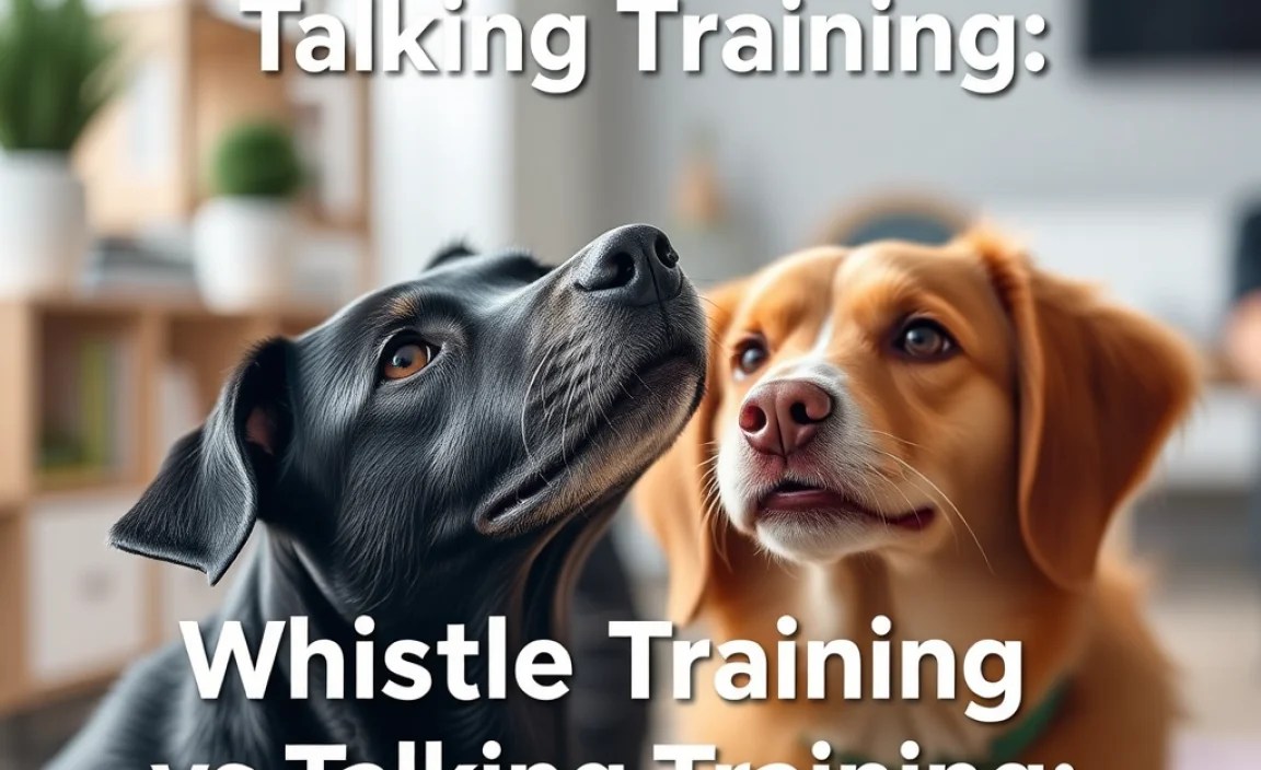 Whistle and talking training each have unique benefits for dog owners. Whistle training uses sound to command dogs from far away. It’s like using a magic spell! Great for outdoor adventures, it keeps dogs alert. On the other hand, talking training builds a stronger bond. Imagine your dog listening to your words closely—it’s heartwarming! Which method suits your pup best? With practice, some dogs even master both, making for super-smart canine companions.
